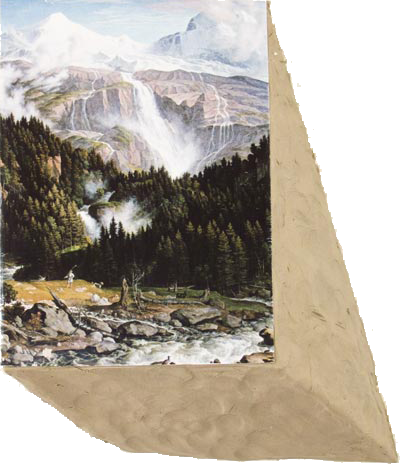 Quoiqu’épris de théorie, il n’arpente pas ce monstre de réflexion par son versant lettré. Dans l’Ascension par le hors-champ, où il pratique l’extraction d’éléments de paysage à travers l’histoire de l’art, l’objet isolé n’est pas tant la montagne que l’intervalle qu’il épargne entre la découpe du tableau et son nouveau support. D’ailleurs, les prémisses de la série étaient des volumes, issus de la toile et sectionnés aux emplacements du cadre. Autour, de l’espace. Cet écart, c’est celui où se jouent nos attitudes affectives et culturelles envers l’image. Une scène du sensible plus que de surface, bien moins virtuelle qu’on le pense.