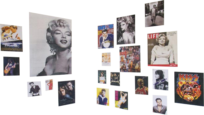 A l’inverse, où l’image voudrait s’absenter à travers la répétition des écrans, il produit une densité, une existence tangible. Quitte à exposer des blocs de mur comme prélevés d’une chambre d’adolescent. Constat d’idolâtrie. (…)