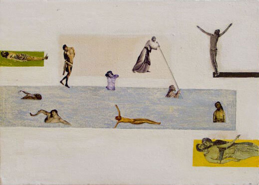 C’est une des facéties favorites de Grégory Delauré, que de semer comme un signe le geste de montrer. (…) Comme dans les tableaux dont il manipule les reproductions: pour la série Sans-titre (tangere), il les découpe à la jonction entre celui qui montre et ce qui est montré, l’absenté, l’ailleurs… ou la limite matérielle de l’image que l’on touche du doigt.